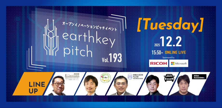 【新規事業担当者必見!!】未来を覗けるスタートアップピッチイベント 【earthkey pitch vol.193】